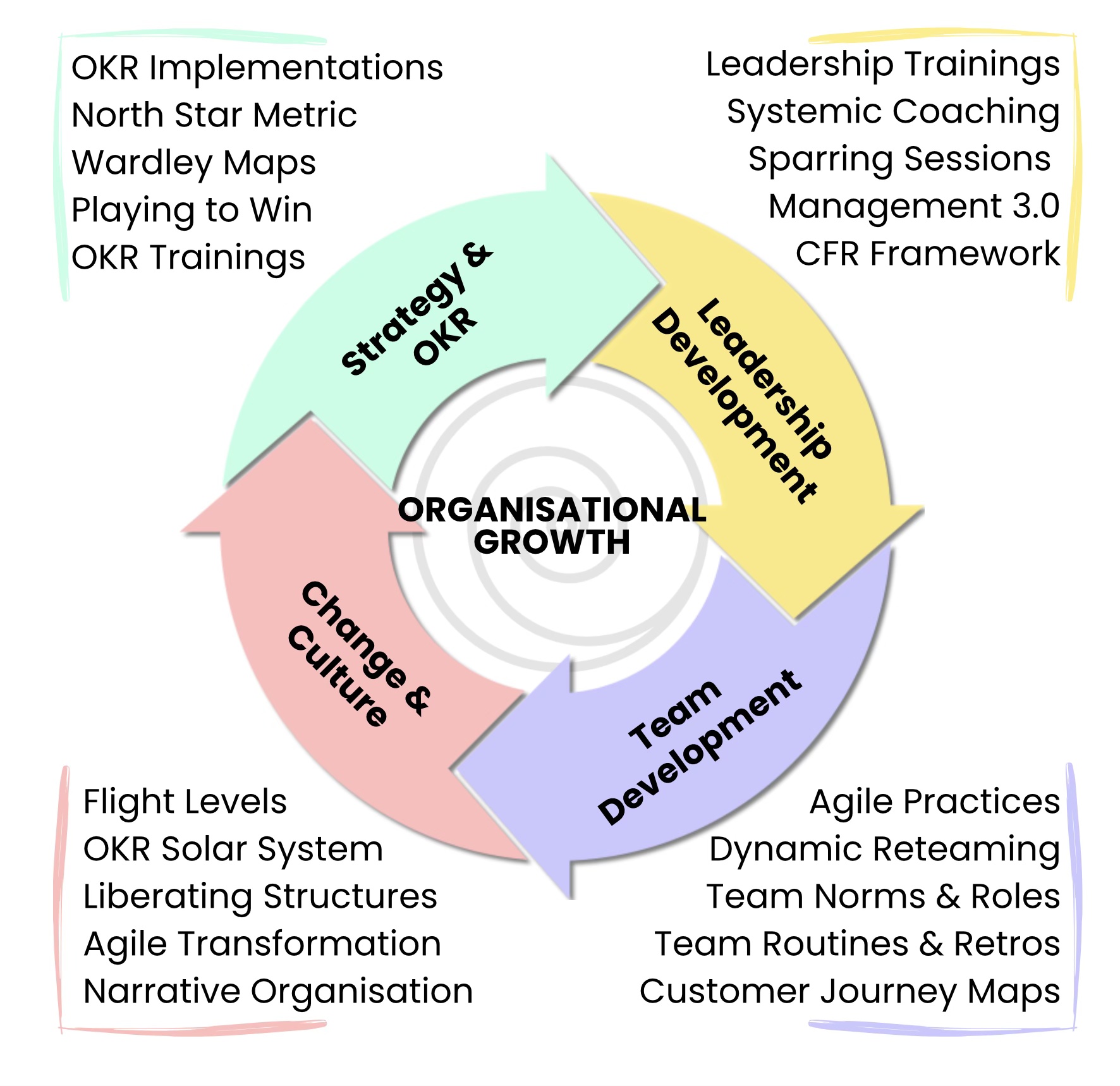 End-to-end (agile) organizational transformation support, from cultural change initiatives to organization design and process optimization.