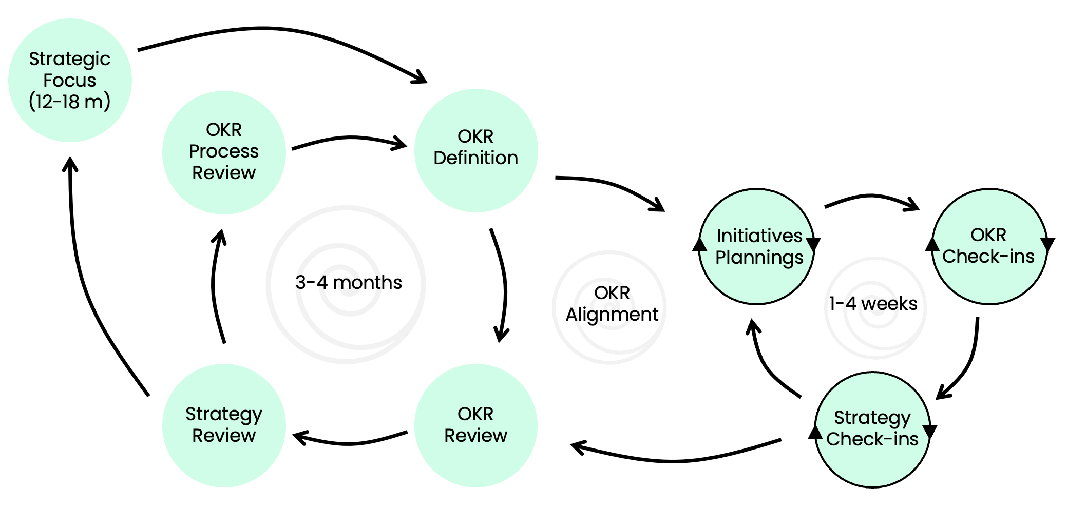 - Die Teams müssen warten, bis alle höheren Ebenen ihre OKR Sets definiert haben, wodurch der gesamte Abstimmungsprozess verlangsamt wird.