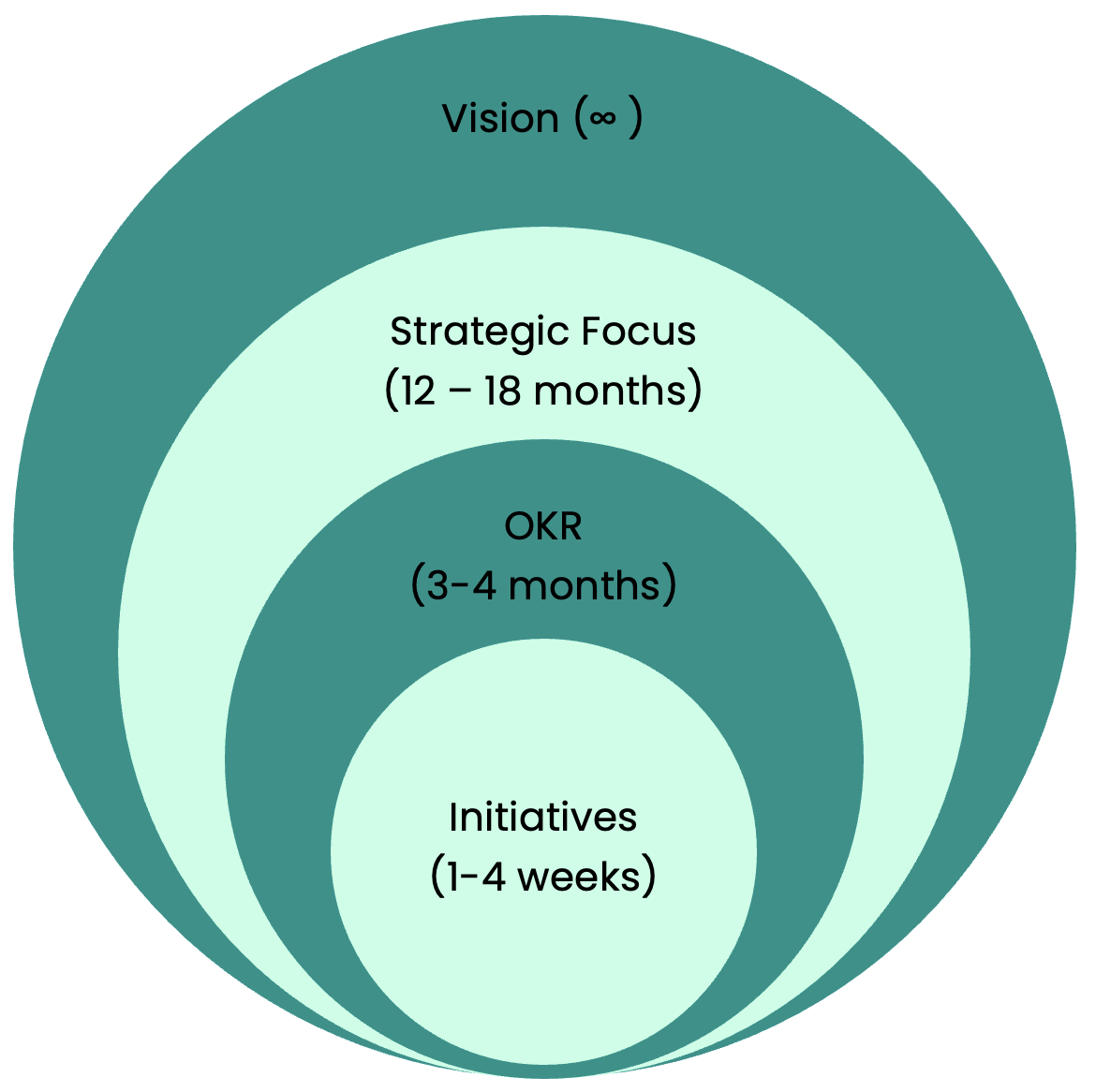 Vision und Strategie sind Voraussetzungen für wirkungsvolle OKR, so wie die OKR Sets die Voraussetzung für die Definition der Initiativen bzw. eines Action Plans sind.